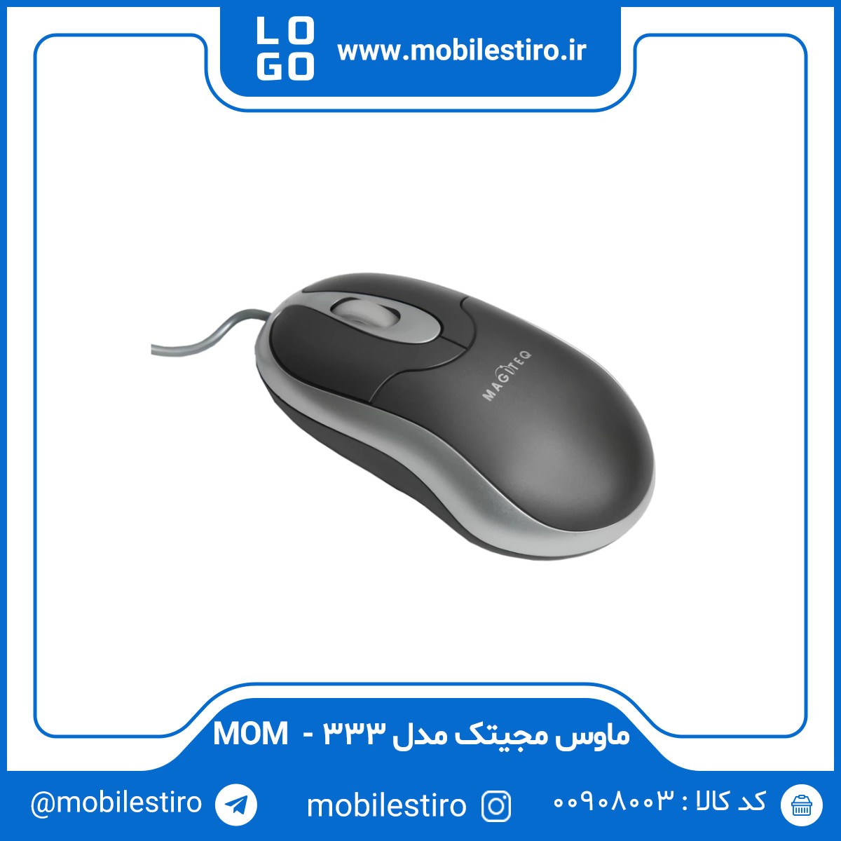 ماوس مجیتک مدل MOM-333ماوس اپتیکال مجیتک مدل MOM-333U با کانکتور USB ، طراحی زیبا و ارگونومیک ، وزن سبک و رنگ آمیزی متفاوت ، محصول کشور چین و دارای کیفیت ساخت و بسته بندی بسیار خوب میباشد. این ماوس در رنگهای قهوه ای تیره ، سورمه ای ، مشکی بعنوان رنگ اصلی و ترکیب نوار نقره ای رنگ موجود میباشد.