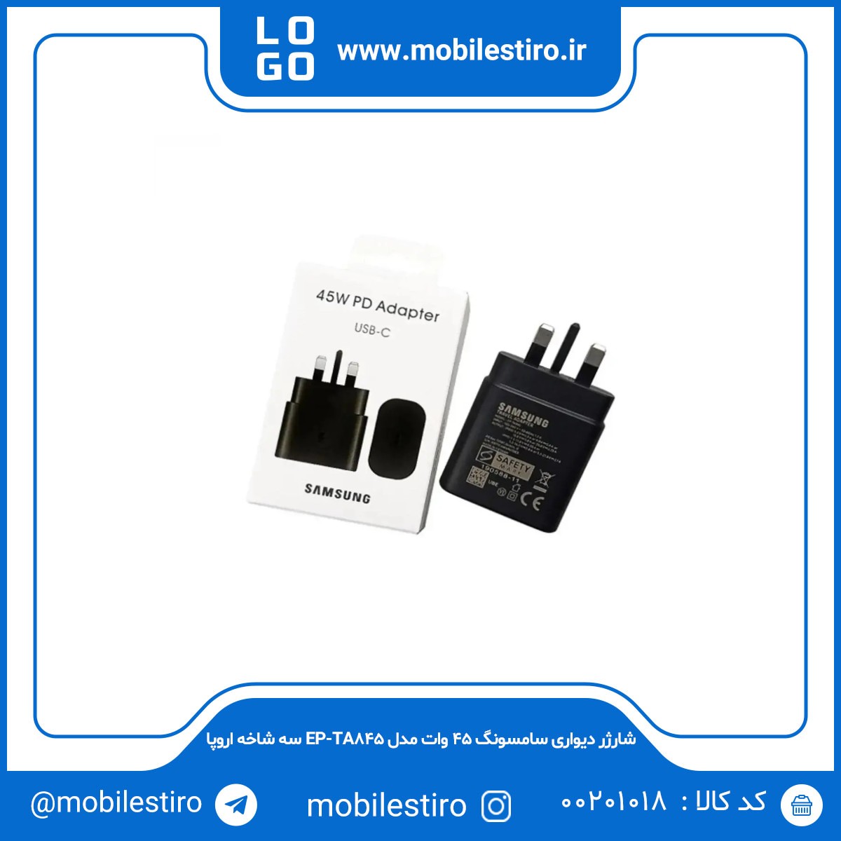 شارژر دیواری سامسونگ 45 وات مدل EP-TA845 سه شاخه اروپاشارژر ۴۵ وات سامسونگ Super Fast Charger مدل EP-TA845